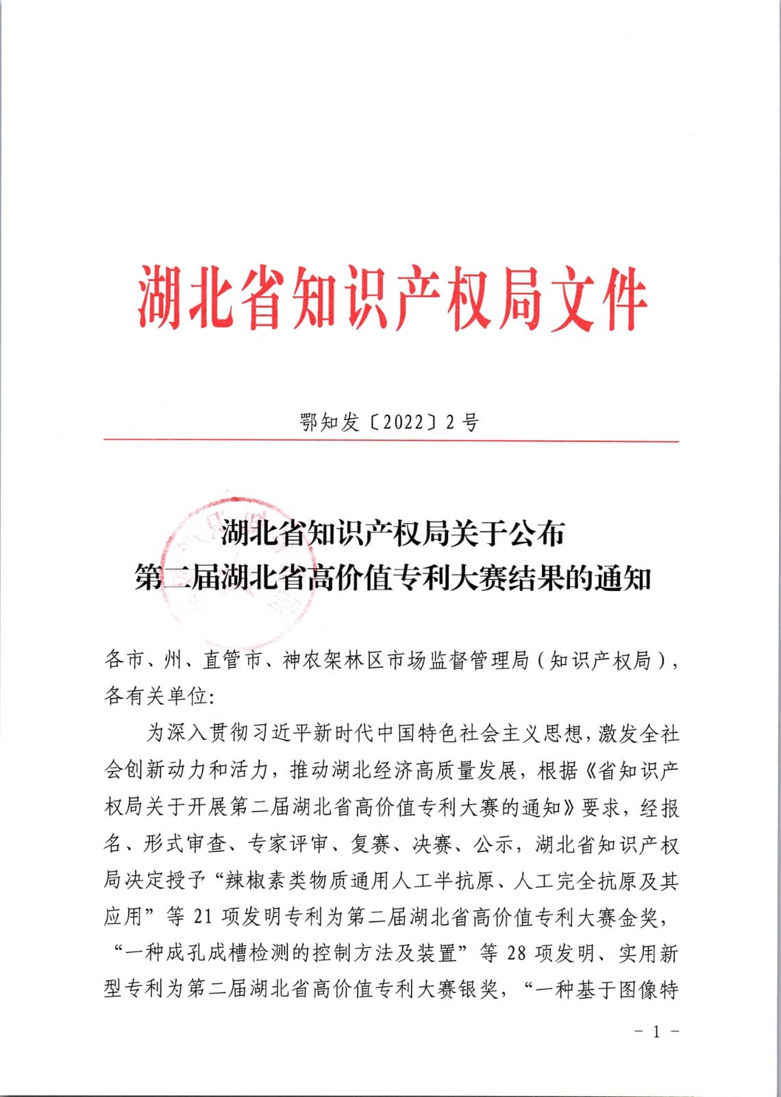 知識產(chǎn)權(quán)尤其是高價值專利是推動企業(yè)創(chuàng)新發(fā)展的核心力量,也是推動我國經(jīng)濟高質(zhì)量發(fā)展的關鍵要素。近年來,為激發(fā)全社會創(chuàng)新動力和活力,推動湖北經(jīng)濟高質(zhì)量發(fā)展,湖北省知識產(chǎn)權(quán)局每年舉辦高價值專利大賽,本屆高價值專利大賽設金獎、銀獎和優(yōu)秀獎,均從發(fā)明專利、實用新型專利、外觀設計專利參賽項目中產(chǎn)生。